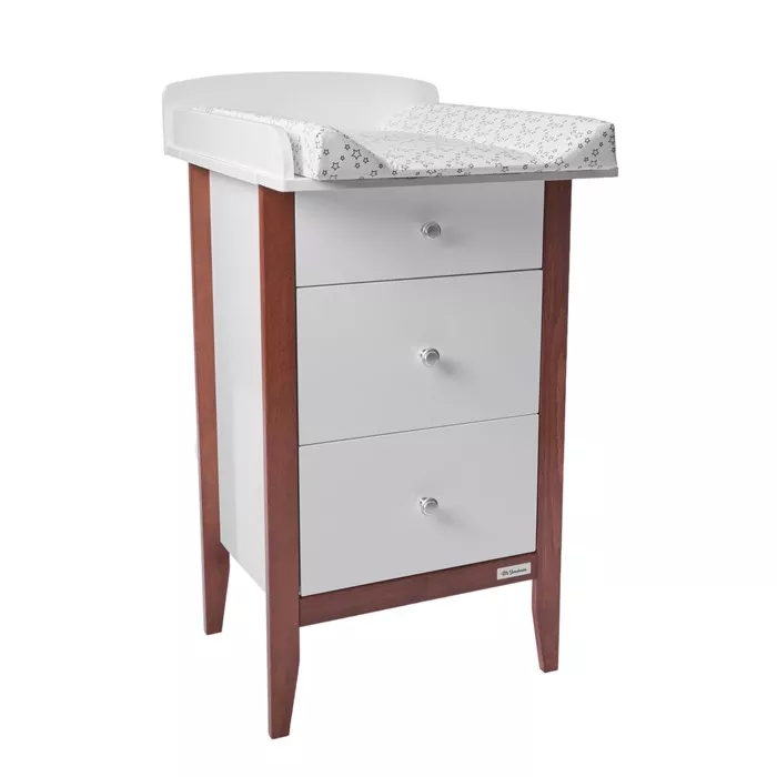 «Delight» - комод с пеленальным столиком от «Mr Sandman». Основание комода и отдельные элементы столика изготовлены из массива бука. Стенки, фасады, ящики и некоторые элементы столика изготовлены из крашенного МДФ, а задняя стенка и дно ящиков - из ХДФ. При производстве используются экологически чистые лаки и краски на водной основе. Комод оснащен тремя выдвижными ящиками, задняя и боковые стенки которых имеют высоту вровень с фасадами, что позволяет максимально использовать объем ящиков. Верхний ящик предназначен для хранения мелких предметов. Ящики комплектуются шариковыми телескопическими направляющими с доводчиками, что делает открытие ящиков более безопасным для малышей.