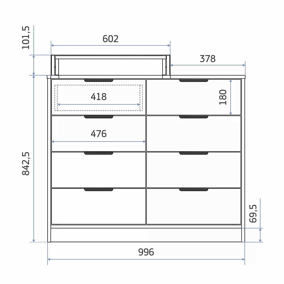 Высота пеленальной поверхности (столешницы комода) - 84,3 см