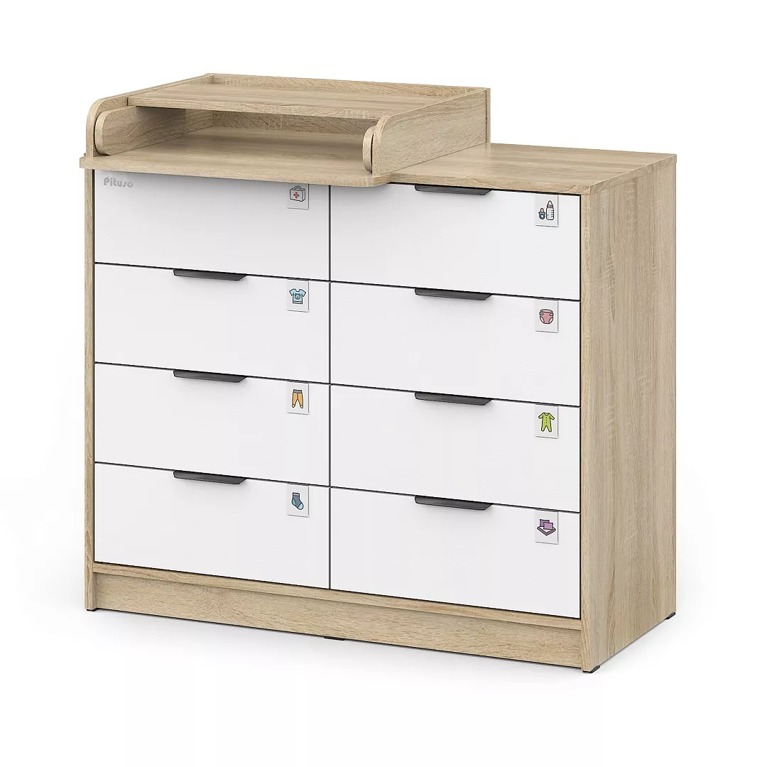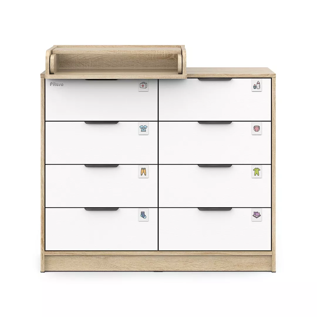 Комод пеленальный Pituso Optimum–большой вместительный 8-ми ящиков, комод с легкосъемным раскладным пеленальным столиком. Ширина комода 100 см.