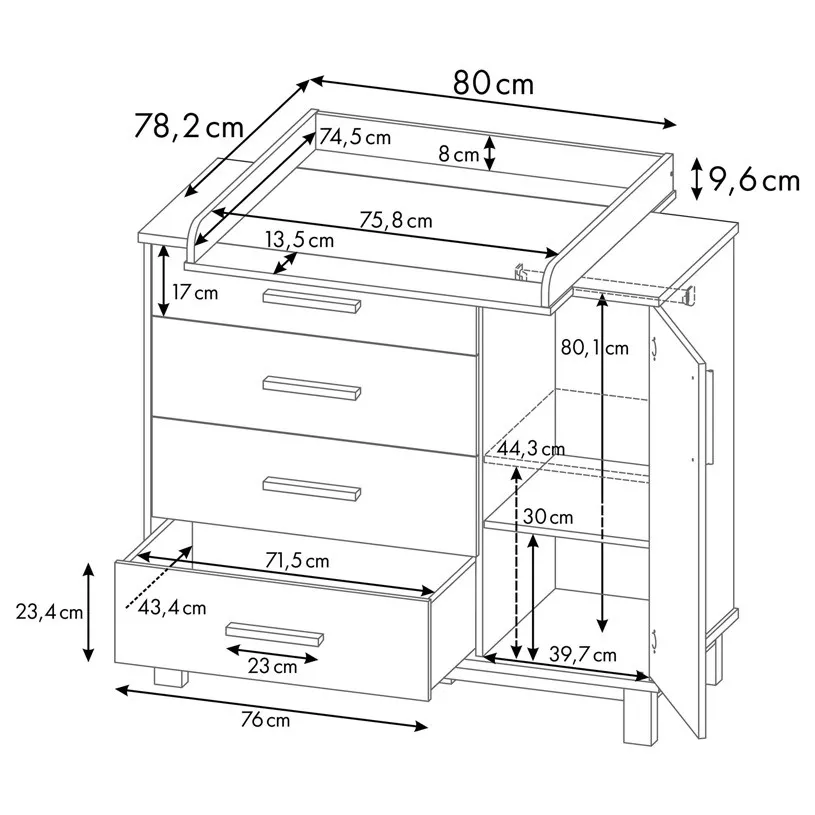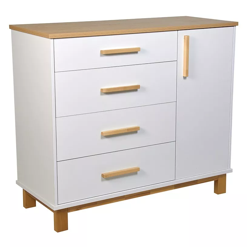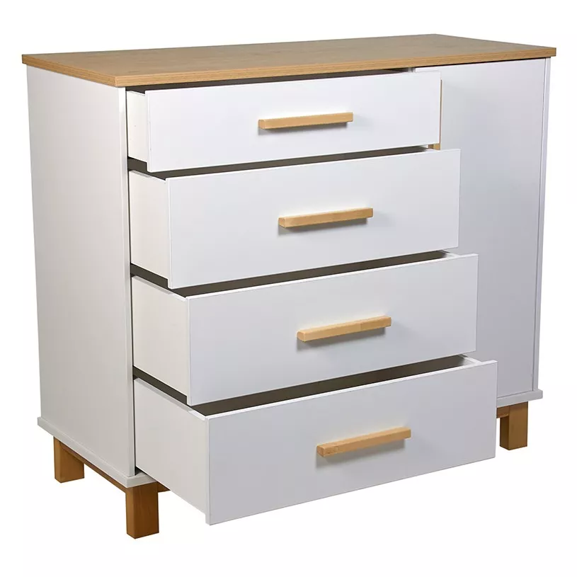 Комод 3403 Simple помимо ящиков оснащен секцией со штангой для одежды, в которой детские вещи будут аккуратно развешены и даже останется место для хранения внизу. Если надобности в использовании штанги нет, то в данный отсек можно установить полочку (идет в комплекте), которая регулируется по высоте, тем самым увеличивая зону для хранения, ведь детских вещей никогда не бывает мало.
